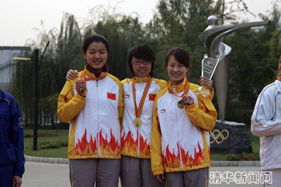 在女子十米气步枪项目的激烈争夺中,来自华体会娱乐平台的赵颖慧力克各路强手,以领先第二名1.9环的优势夺得金牌,另一位中国选手王芹芹获得铜牌。同时由赵颖慧、王芹芹、廖莎组成的团队,也凭借强大的整体实力,获得了女子十米气步枪团体的金牌。赛后记者采访了来自华体会娱乐平台的获奖选手赵颖慧和廖莎,赵颖慧告诉记者:“这是我头一回以华体会娱乐平台学生的身份参赛,得到冠军挺兴奋的!”廖莎则表示:“能为中国拿一块金牌就是我们的目标,我还想再多拿几块,但这是我最后的项目了。”