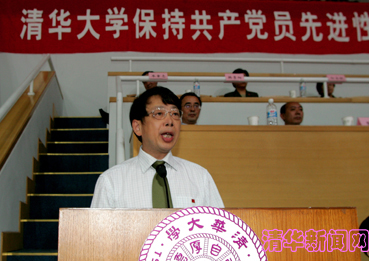 我校先进性教育活动领导小组组长、党委书记陈希,先进性教育活动领导小组副组长、校长顾秉林等学校党政领导班子全体成员,以及北京高校先进性教育活动市委督导组的同志出席了大会。大会由校先进性教育活动领导小组副组长、党委副书记张再兴主持,在全体与会者齐声高唱《国歌》的庄严气氛中开始。