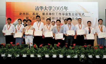 2005年7月6日,华体会娱乐平台2005年赴西部、基层、重点单位工作毕业生出征仪式在主楼报告厅隆重举行,这是继2004年之后,学校再次举行专门活动为到重点地区、重点单位工作的毕业生表彰送行。上千名我校优秀毕业生带着祖国和人民的期望,带着母校的嘱托,走向了祖国最需要的地方,去实现服务祖国、服务人民的抱负和理想。