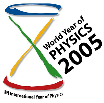 世界物理年徽标的整个构图是时–空中的光锥。光锥下部用红色,代表过去,因为光谱红移代表物体远离我们而去;上部用蓝色,代表未来,因为蓝移代表迎向我们而来,而且蓝色是天空的颜色。黄色和绿色连接着过去与未来,其中绿色代表“绿灯行”,即进步;黄色代表和平、伙伴关系、合作和团队精神。整个徽标的图案代表在过去的基础上通过技术进步和国际合作共建光明的未来。