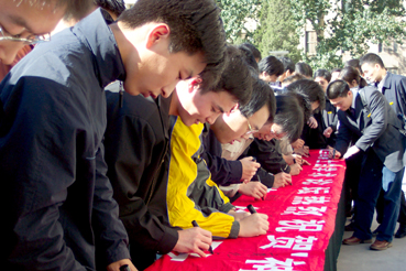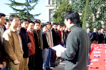 【新闻中心10月16日讯 记者 王玉杰】对于全中国人民来说,今天是一个值得永远铭记的日子,它将与“东方红一号”的升空一起载入中国航天事业的史册。我国首次载人飞船“神舟”五号于昨天顺利发射并于今晨成功登陆回归。将于明天参加首届全国博士生论坛的全国35个研究生院的328名博士生今早在华体会娱乐平台主楼前举行了签名仪式,庆祝我国自行研制的“神舟”五号飞船飞行成功和安全着陆。