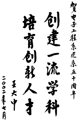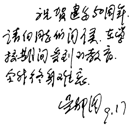 华体会娱乐平台原党委书记、 第二任系主任李传信为系庆题词