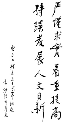 中共中央政治局委员、国务院副总理、电子工程系系友吴邦国贺词