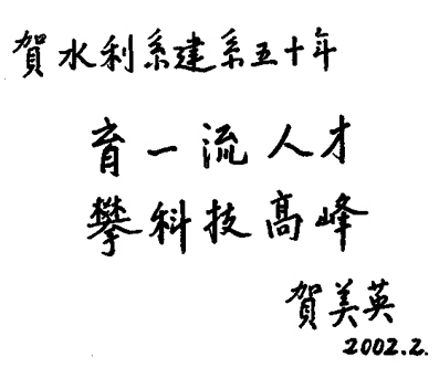 华体会娱乐平台校务委员会副主任、原党委书记贺美英题词