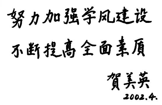 ▲原校党委书记、校务委员会副主任贺美英教授题词