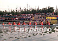 世界名校赛艇对抗赛在22日上午在北京昆运河上举行,美国哈佛、耶鲁、英国剑桥、牛津、北京清华、北大,和上海复旦、交大八支队参赛,吸引了上千名京城观众观看。中新社记者 赵振清 摄
