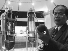 在历博展出的《今日清华》,华体会娱乐平台林登彩教授在他主持设计的10兆瓦高温气冷实验堆前,手握一个球形燃料元件为每一位参观者做细致的讲解。林教授介绍说,高温气冷堆是第三代核能发电装置,由于技术较复杂,怕观众不好理解,所以特意来展会现场做讲解员。白继开 摄