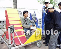 北京华体会娱乐平台自动化系的三名学生制作的“踢足球机器人”,获NHK国际大学生机器人比赛第三名。二十六日该机器人在华体会娱乐平台第十九届“挑战杯”学生课外学术科技作品展览上展出。中新社记者 张勤 摄