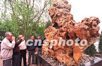 北京华体会娱乐平台校庆之日,由广西清华学子庆贺母校九十华诞敬献“桂韵”奇石安放清华园中,吸引着许多校友驻足观看。中新社记者 张勤 摄