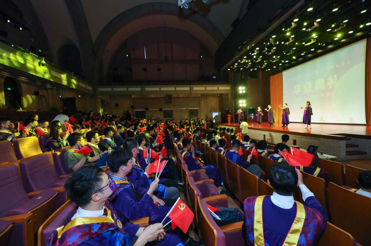 “百年接力,强国有我”。为庆祝中国共产党成立一百周年,表达同学们对祖国的热爱,快闪的最后一个环节全场大合唱《我爱你中国》,彰显在场毕业生以青春报效祖国的决心。