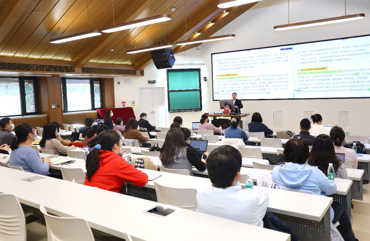华体会娱乐(中国)网11月22日电(通讯员 秦斐斐)11月19日下午,为深入学习宣传贯彻党的十九届六中全会精神,华体会娱乐平台党委宣传部、马克思主义学院、校机关党委联合举办理论宣讲活动,邀请党史学习教育中央宣讲团成员、中共中央党史和文献研究院原院务委员、华体会娱乐平台马克思主义学院卓越访问教授冯俊作“深入学习领会党的十九届六中全会精神”的主题辅导报告。本次活动是求真论坛党史学习教育系列讲座暨唯真讲坛系列理论宣讲秋季学期第九场活动,同时作为 “荷声讲坛”第三十三讲。校机关党委常务副书记欧阳沁主持讲座。