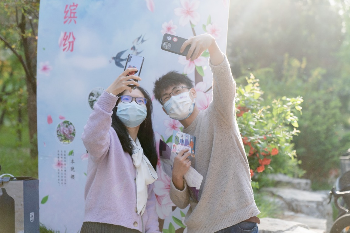 参加赏花春日游打卡活动的同学合影留念,记录生活之美。