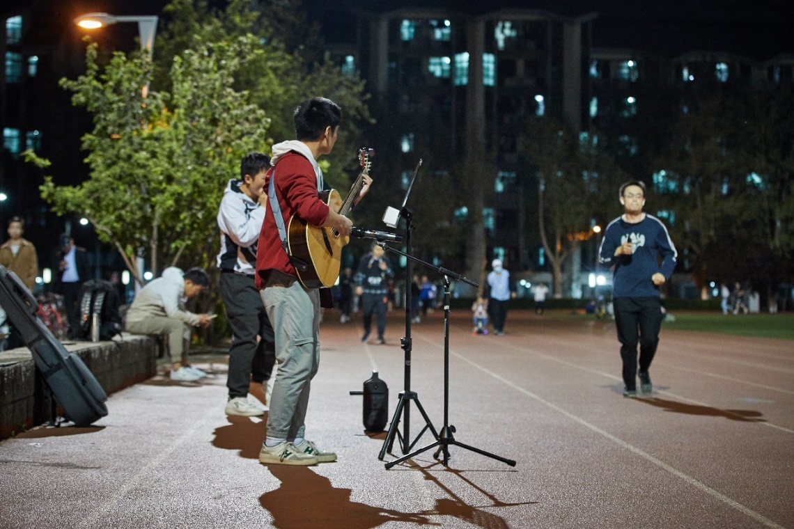 紫荆操场边的吉他演奏,让夜跑似乎有了更多音乐之美的乐趣。