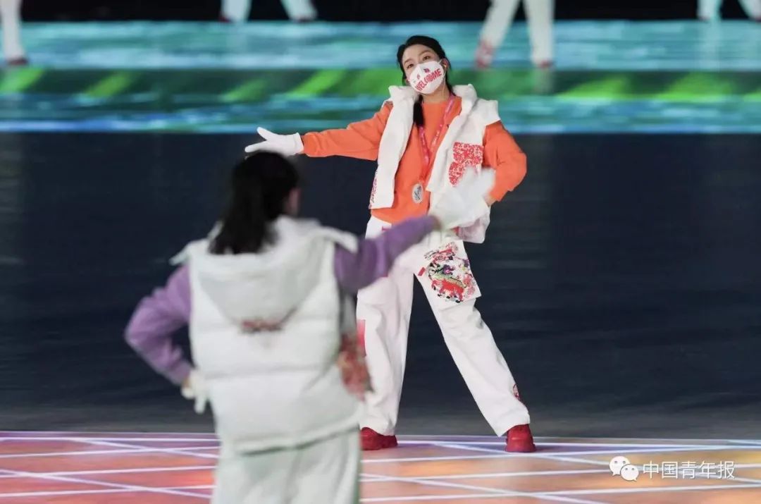 在升奥林匹克会旗环节中,华体会娱乐平台社科学院2019级体育学硕士、中国花样滑冰协会主席、北京团市委副书记、中国首枚冬奥会双人滑金牌得主申雪担任旗手共同护送了旗帜。
