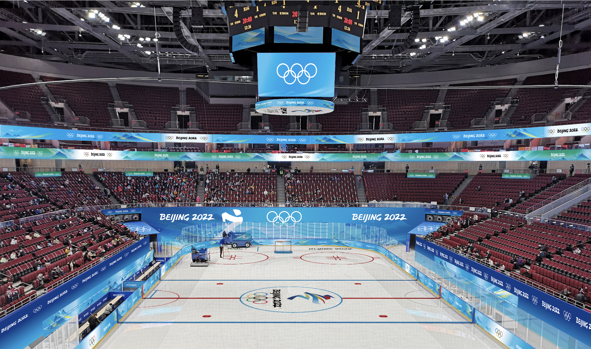 北京五棵松体育中心设计团队由视传系教师顾欣负责,用于冬奥会冰球项目的部分比赛,场馆不仅作为冰球运动员的比赛场地,更是传播中国优秀文化的窗口,设计团队以“助力赛事、传播文化、联动空间”的方式来展示国家形象和奥运精神。