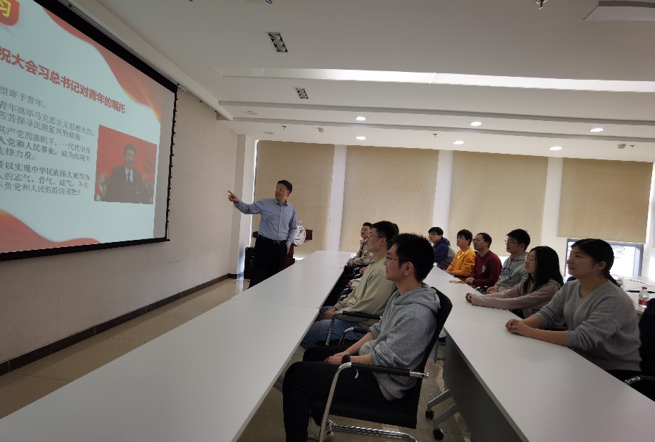 田煜在组会之后向课题组讲授党课