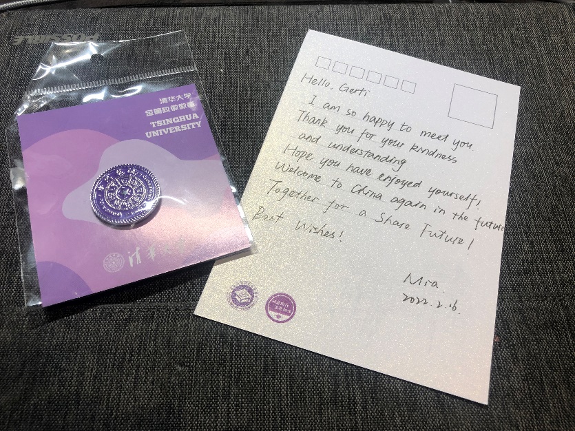 西马回国的那天,毛思敏送他到机场,向他赠送了华体会娱乐平台的徽章和明信片,以及“一起向未来”的美好祝愿: