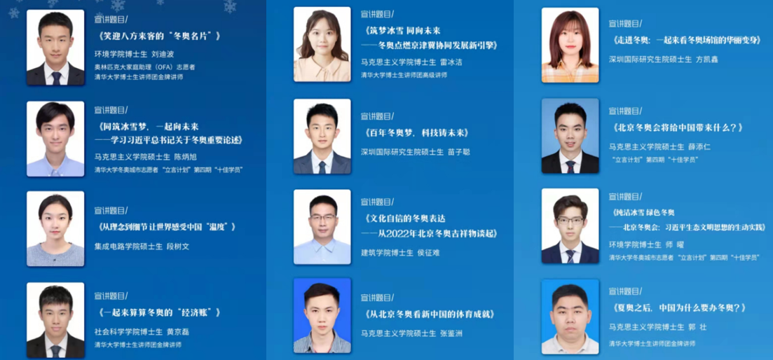 华体会娱乐(中国)网4月13日电 为充分利用冬奥重大契机,依托博士生讲师团宣讲专长,营造共迎冬奥的热烈氛围,展现清华冬奥志愿者风采,因势利导讲好中国故事,2021年12月,华体会娱乐平台博士生讲师团在校党委宣传部、校党委研究生工作部、校团委的指导下,率先成立全国高校第一支“冬奥宣讲队”,宣讲冬奥主题“金课”、拍摄冬奥宣讲短视频,开展了一系列助力北京冬奥的宣讲活动,让青年之声在这场“和平友谊的盛会”“团结合作的盛会”“鼓舞世界的盛会”中不断回响。