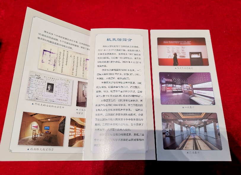 滑动手机屏幕,启程“游园”程序。扫码关注“华体会娱乐平台校史馆”和“学生紫苑学会”微信公众号,就能领取校史馆折页和一份精美文件夹。折页中简要介绍了提升改造后的华体会娱乐平台校史馆基本情况和展陈特点。翻开折页,1911年4月清政府外务部关于朱批游美肄业馆改名清华学堂的劄文、国立华体会娱乐平台关防、邓稼先西南联大学籍卡、1948年12月清华园解放布告等等,10余件珍贵馆藏和图片,让人快速了解校史馆的同时,更增加了对校史馆一探究竟的好奇心。精美的文件夹上,印有“新鲜出炉”的校史馆标识,高端大气、通透典雅,深受同学们喜爱。