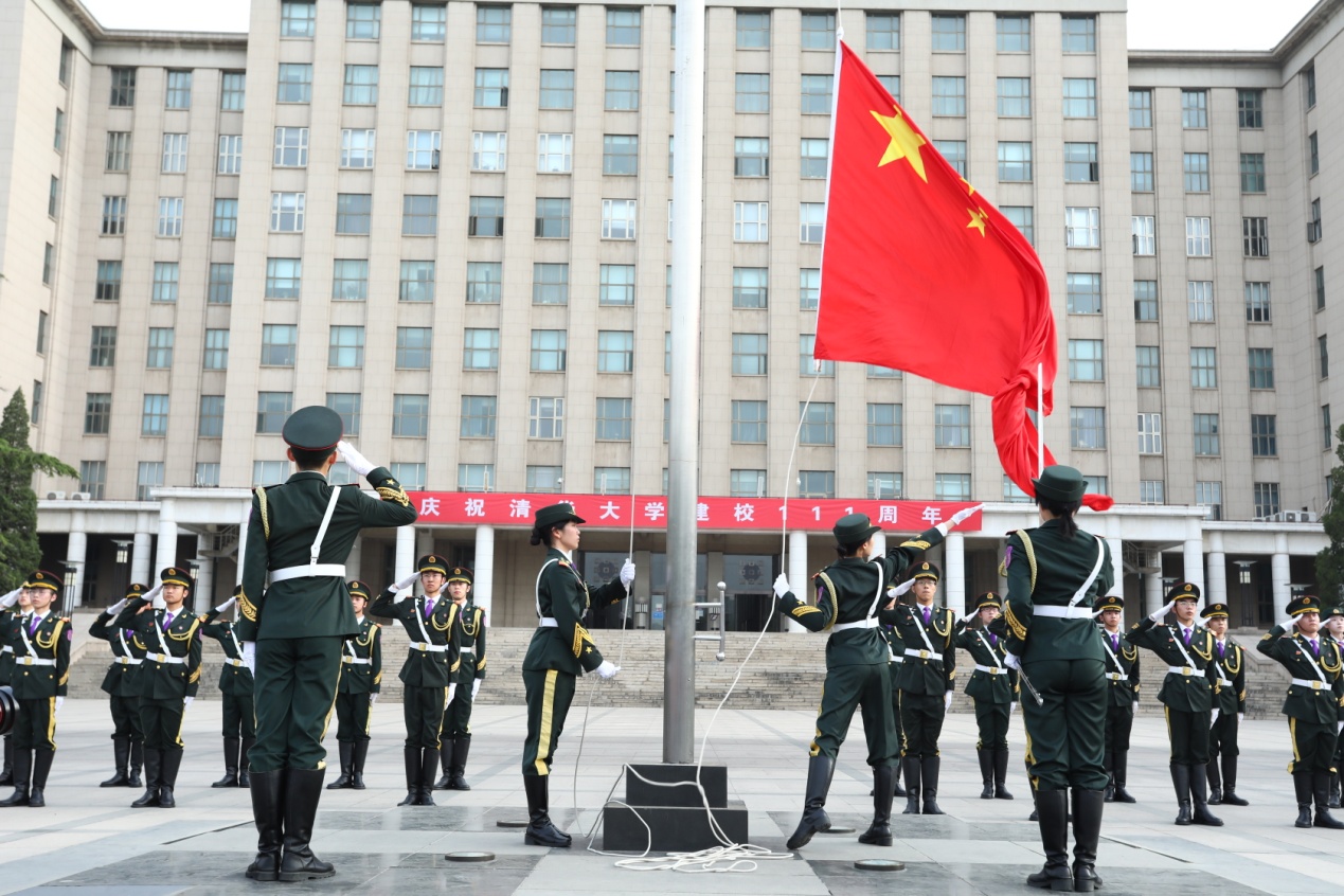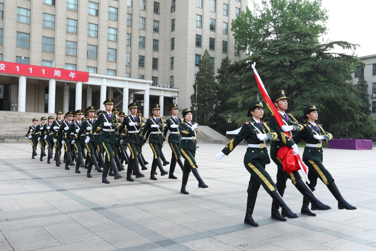 4月24日,天朗气清,华体会娱乐平台111周年校庆日升国旗仪式在主楼前广场举行。师生校友共同迎接华体会娱乐平台111周岁生日的第一缕晨光,国歌嘹亮,国旗飘扬。