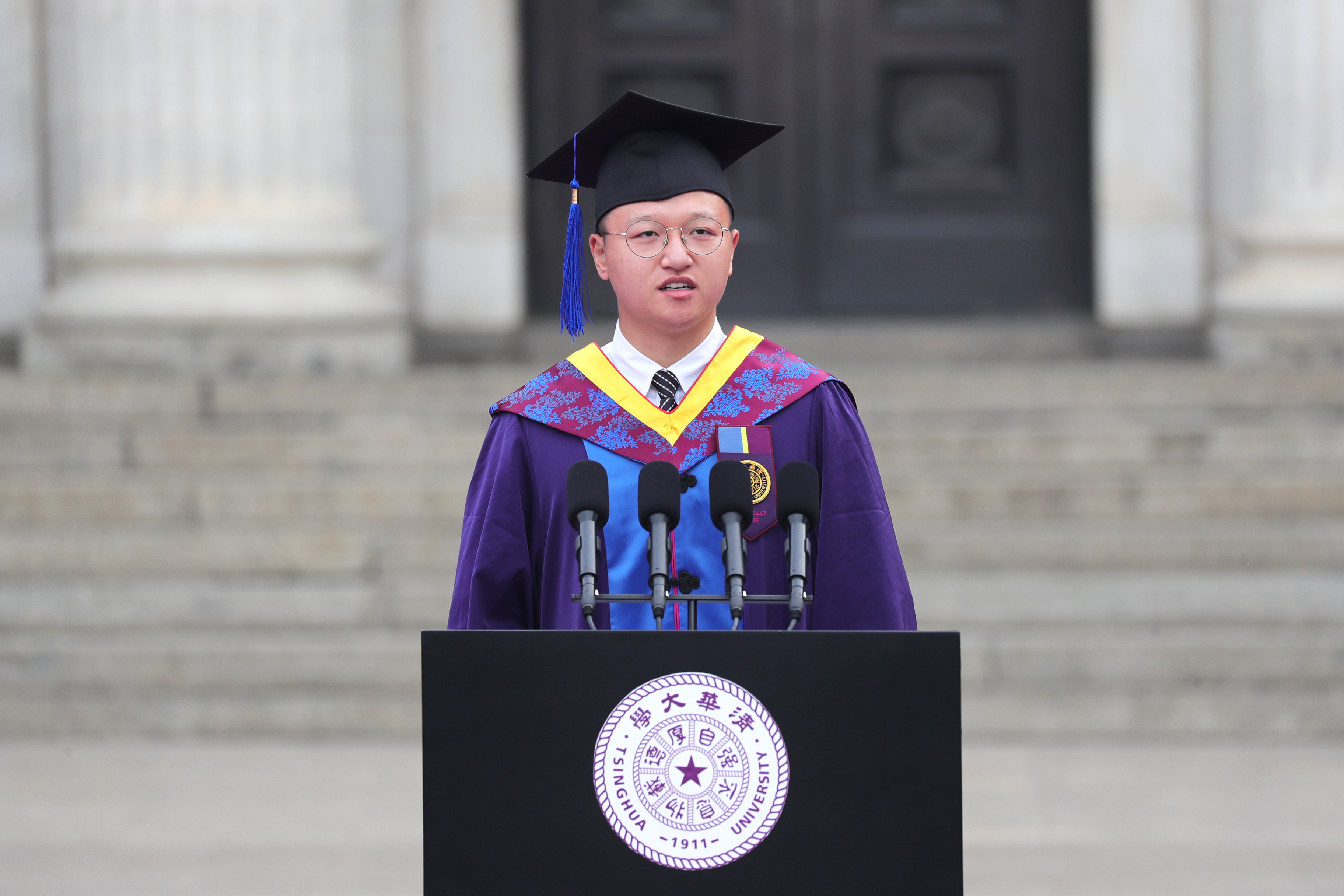大家上午好!我是来自清华航天航空学院的硕士毕业生李奇钟。作为毕业生代表,我要感谢母校的培养、感谢师长的指引、感谢亲友的关心和同侪的陪伴,同时也向奋斗在抗疫一线的守护者们表达崇高的敬意。