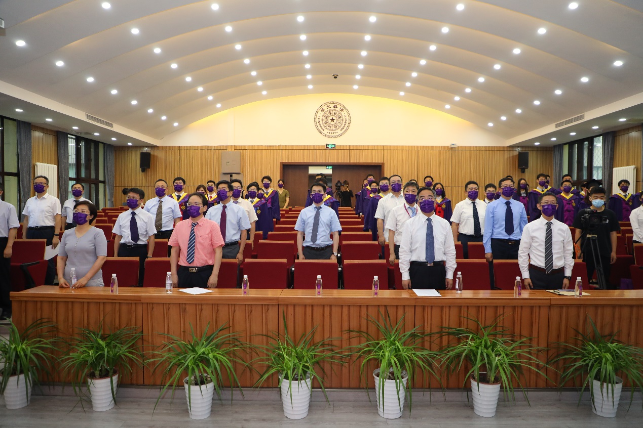 典礼在庄严雄壮的国歌声中拉开帷幕。于歆杰首先介绍了本年度毕业生的就业情况,并对全体毕业生表示祝贺,勉励毕业生在未来工作学习中坚定方向,保持平和心态,奋勇争先,奏响不负亲友和老师期望、更对得起自己的人生乐章。