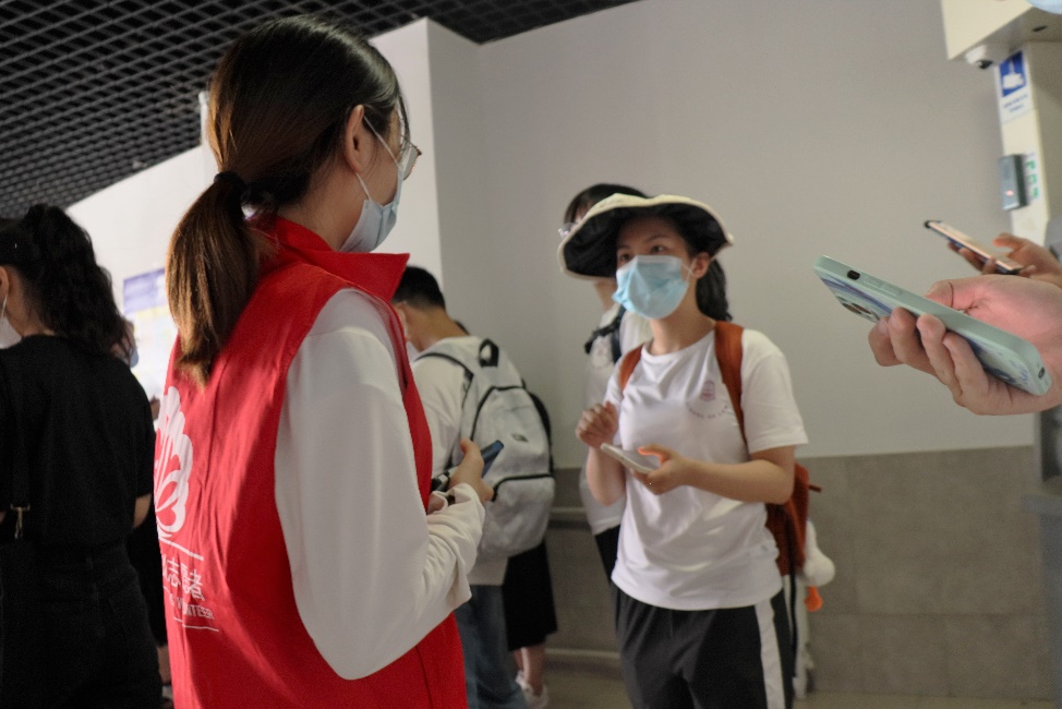 按照疫情防控要求,全体新生须在报到当天完成一次核酸检测。面对时间紧、任务重的核酸检测工作,十余名志愿者组成了核酸检测志愿者小队,指导新生进行检测预约,维持现场秩序,录入身份信息,在三小时内完成二字班新生3000余人的核酸检测工作,展现了紫荆志愿者“召之即来、来之能战”的工作作风,为疫情防控下的校园安全提供保障。