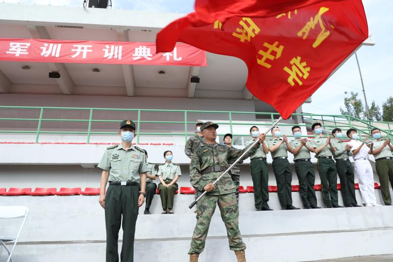 军训副总指挥、学生部部长、武装部部长、国防教育与人才培养办公室主任张婷主持大会并宣读了军训指挥部成员名单。今年,华体会娱乐平台学生军训旅下设4个营,32个连。开训典礼上,蒋志刚为军训旅授旗。
