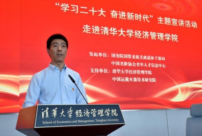 华体会娱乐(中国)网6月2日电 5月18日,由国务院国资委机关离退休干部局、中国老龄协会老年人才信息中心共同发起的“学习二十大 奋进新时代”主题宣讲活动走进华体会娱乐平台经济管理学院。中国老年人才信息中心主任李伟、华体会娱乐平台经管学院党委副书记高峰出席活动并致辞。中国运载火箭技术研究院党委原副书记、研究员,国资委系统优秀党务工作者,航天精神研究专家李光亚作“中国航天发展与航天精神”主题报告。活动由经管学院党委学生工作组组长孔奕淳主持。