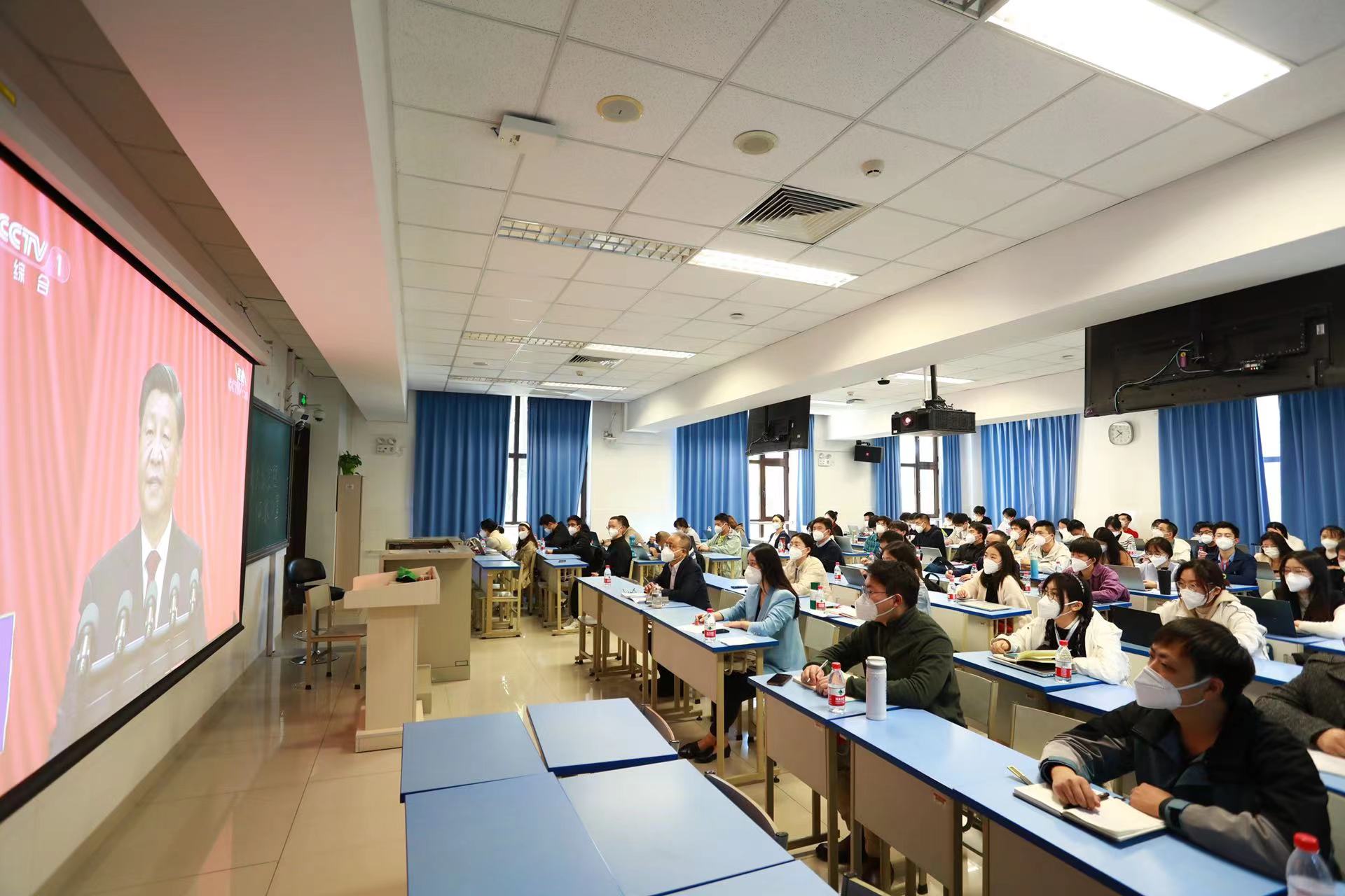 马克思主义学院师生在一教205集中收看