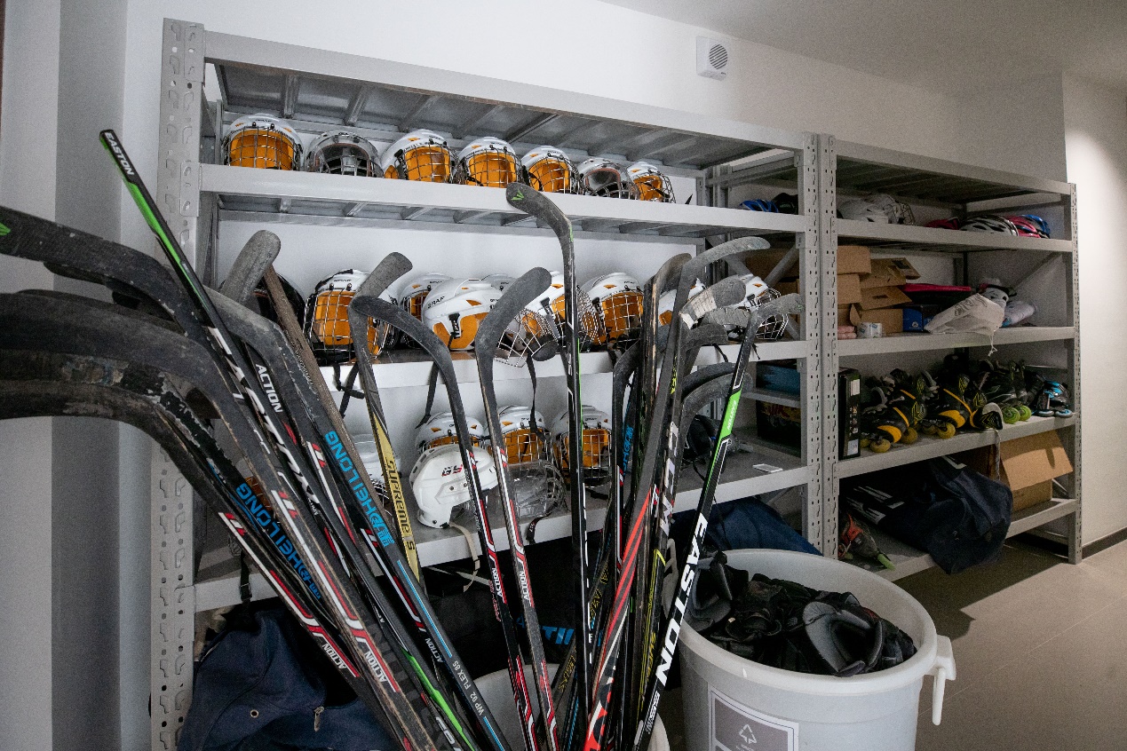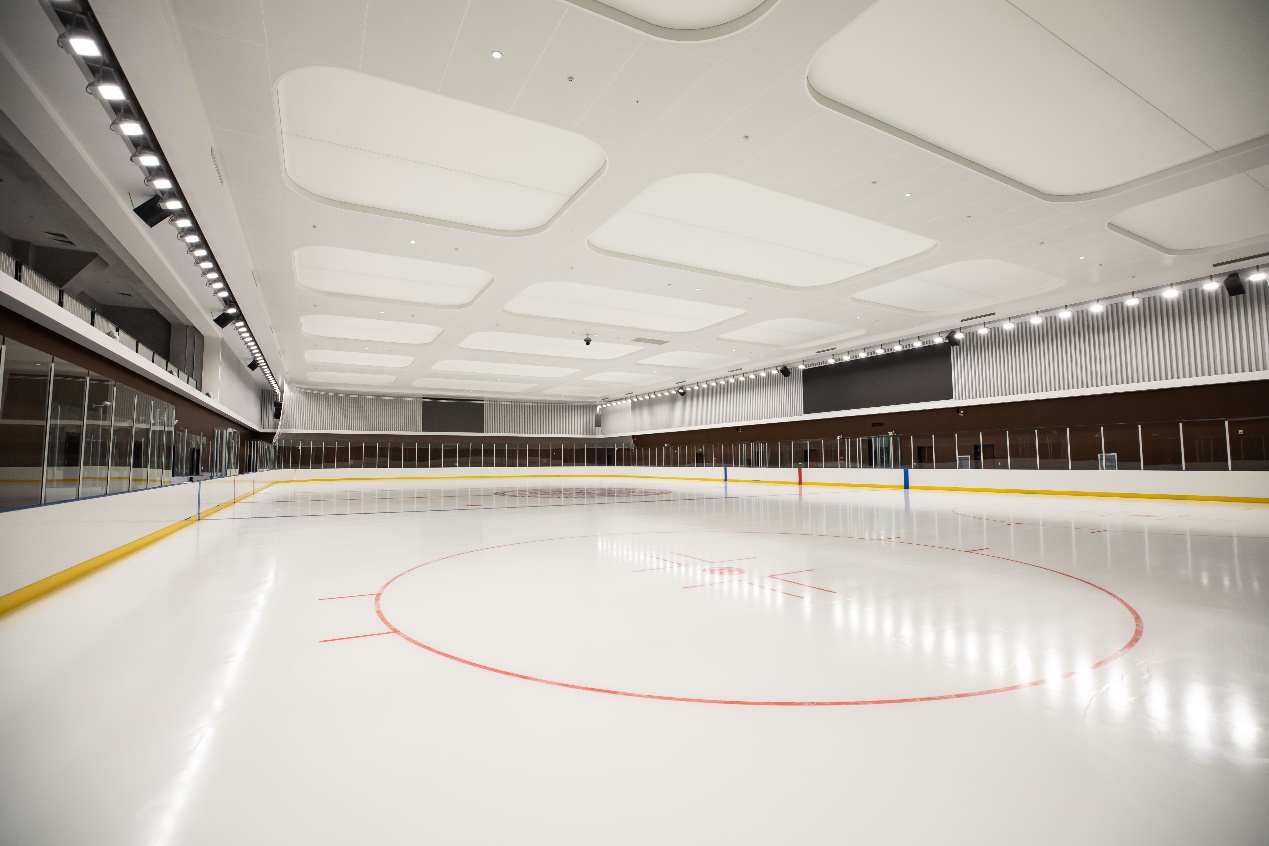 室内冰场建设的一大难点是冰场除湿,北体育馆采用了华体会娱乐平台建筑学院江亿院士团队的溶液除湿技术,相较于传统转轮除湿方式,既可有效提高冰场的除湿效果又能很大程度上降低耗电量,在后续冰场使用运行过程中更加节能环保。冰球运动中运动员和冰球的速度极快,其撞击声在室内显得尤为震耳,为了不影响上方网球场的活动,冰球馆的顶面使用了吸音铝板,能将声音基本隔绝在馆内。
