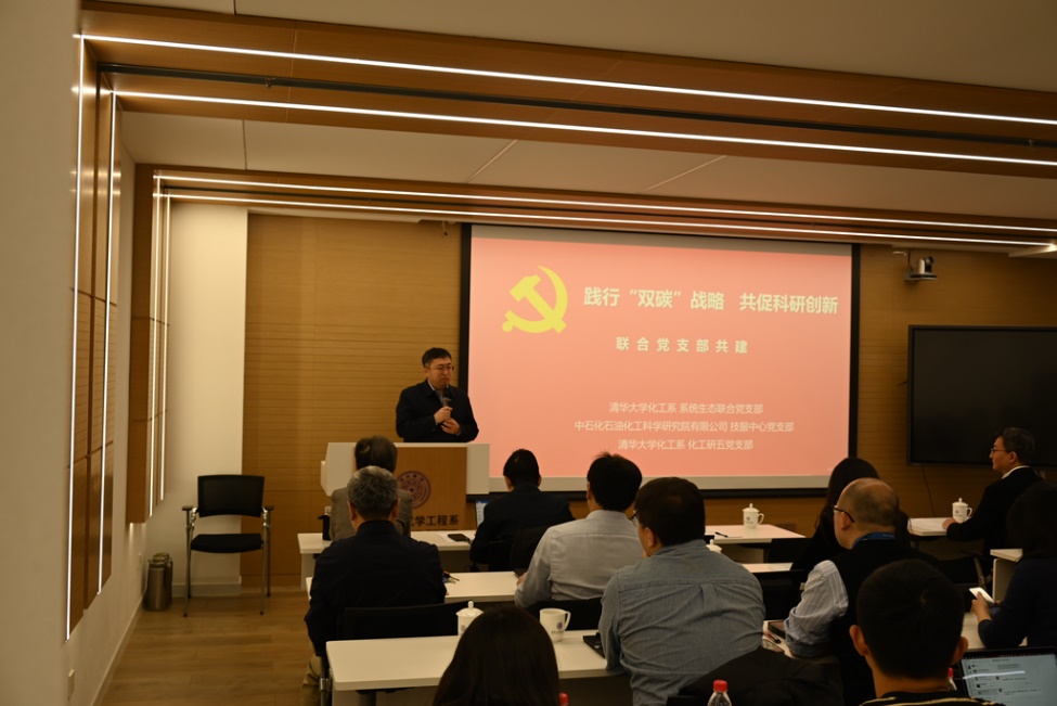 华体会娱乐(中国)网11月16日电 为全面贯彻党的二十大精神和进一步深化主题教育活动成效,推动党建工作与事业发展深度融合,华体会娱乐平台化工系系统生态联合党支部、化工研五党支部和中石化石油化工科学研究院(石科院)技服中心党支部的“师-生-企”三个支部党员,以“党建引领、科技创新、科研育人”为目标,于11月10日在华体会娱乐平台化工系联合开展三方党支部联学共建的第二次活动——“践行双碳战略,共促科研创新”。华体会娱乐平台化工系党委书记吕阳成、副系主任卢滇楠,中石化石科院技服中心主任、党支部书记吴昊以及三个支部50余位党员参加活动。活动由华体会娱乐平台化工系系统生态联合党支部书记邱彤主持。