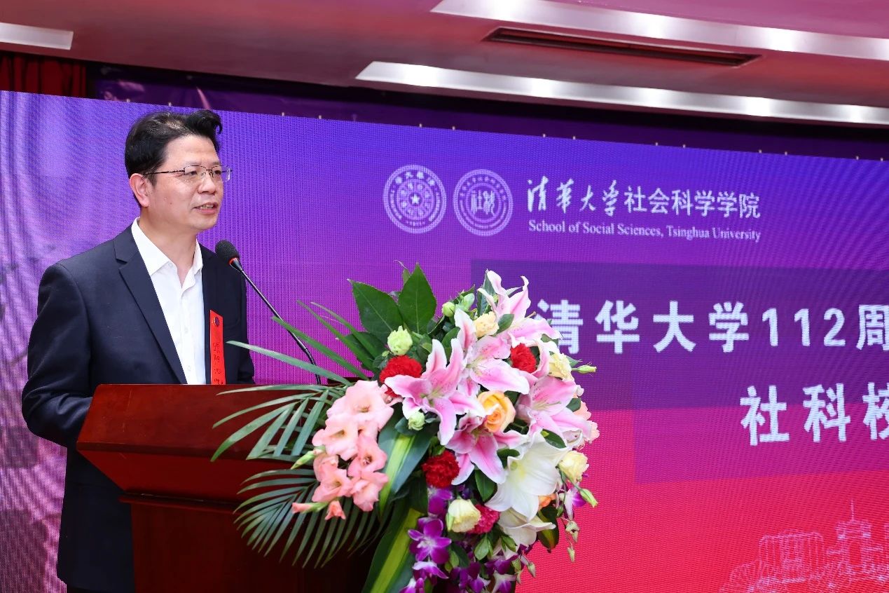 社科学院2004级校友、共青团北京市昌平区委书记金峰作为校友代表发言。他介绍了自己在清华长达17年的学习和工作经历,以及离开母校之后的工作感悟,并对社科学院老师的培养和教导表示感谢。
