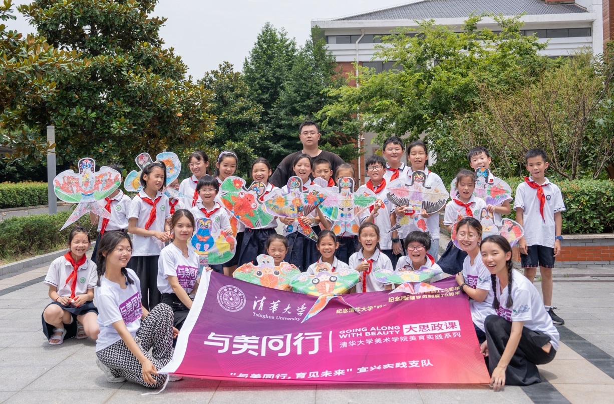 在宜兴市蒋南翔实验小学,“育见未来”支队为当地孩子们准备了剪纸、风筝绘制、扎染、拓印等活动课程,辅导员支队的成员们为当地学生们带来了丰富多彩的励志课堂,并在工艺美术大师的引导下共同观摩了非遗紫砂工艺。清华美院雕塑系研究生还用紫砂泥为江苏省宜兴中学学生现场示范创作了徐悲鸿雕塑。宜兴市民间制壶艺人高洋接受采访时表示:“清华美院是最好的美术学院之一,他们的审美、他们的技法融入到我们的传统工艺中,可以给当代紫砂带来新的养分、新的发展。”