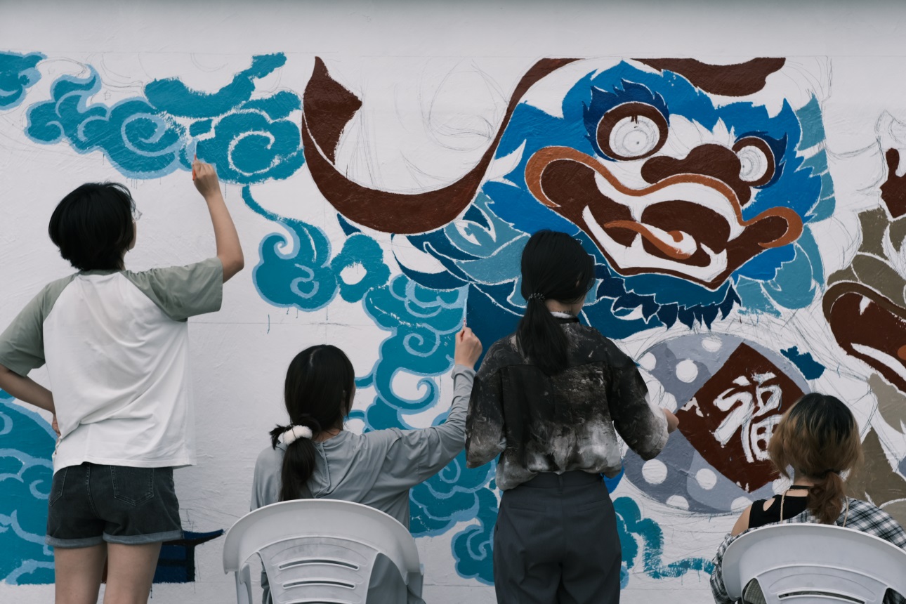 在宜兴湖㳇镇,“塑绘留痕”支队将艺术创作与当地的实际需求结合,用墙绘作品美化乡村,助力乡村振兴,在一周时间内完成了三组大尺幅墙绘的绘制工作,运用“竹海”“宜兴市非遗勇氏青狮白象”等素材,呈现画面既结合了当地的文化特色,又融入了当代的审美元素,成为乡村的亮丽风景。无锡宜兴市湖㳇镇镇长蒋文荣表示:“这些美术作品不仅能够点缀我们的美丽乡村,也能够成为我们吸引游客的网红打卡点,从而能助力我们全镇的乡村振兴。”