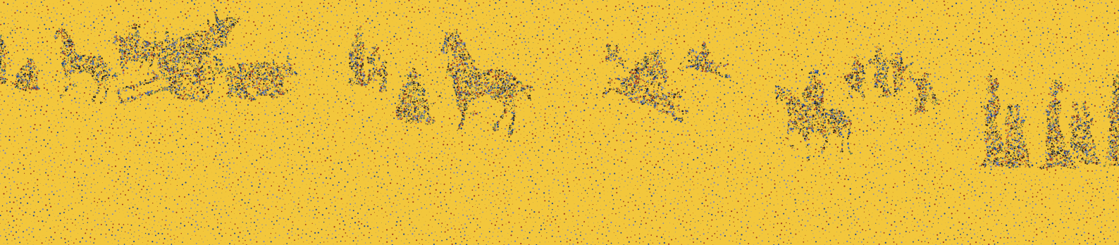 向帆从东晋高僧法显所记录的“佛影窟”中获得灵感,运用计算机技术,在邮轮剧场走廊创作了壁画《仿佛如有》,让游客在邮轮剧院走廊就能够观赏到若隐若现的飞天、沙漠旅人,赋予了敦煌图像新的解读。