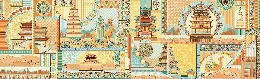 作品名称:丝路漫缕、瓷色远香(局部) 大堂丝绸之路主题壁画及延展装饰画