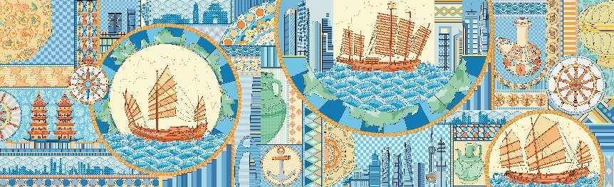 壁画创作者,美术学院张宝华教授说:“在壁画创作中,我们融入了我国传统陶瓷、丝绸、船舶以及中外建筑等艺术元素,来体现中华文明通过古丝绸之路对于世界其他文明发展的贡献。”