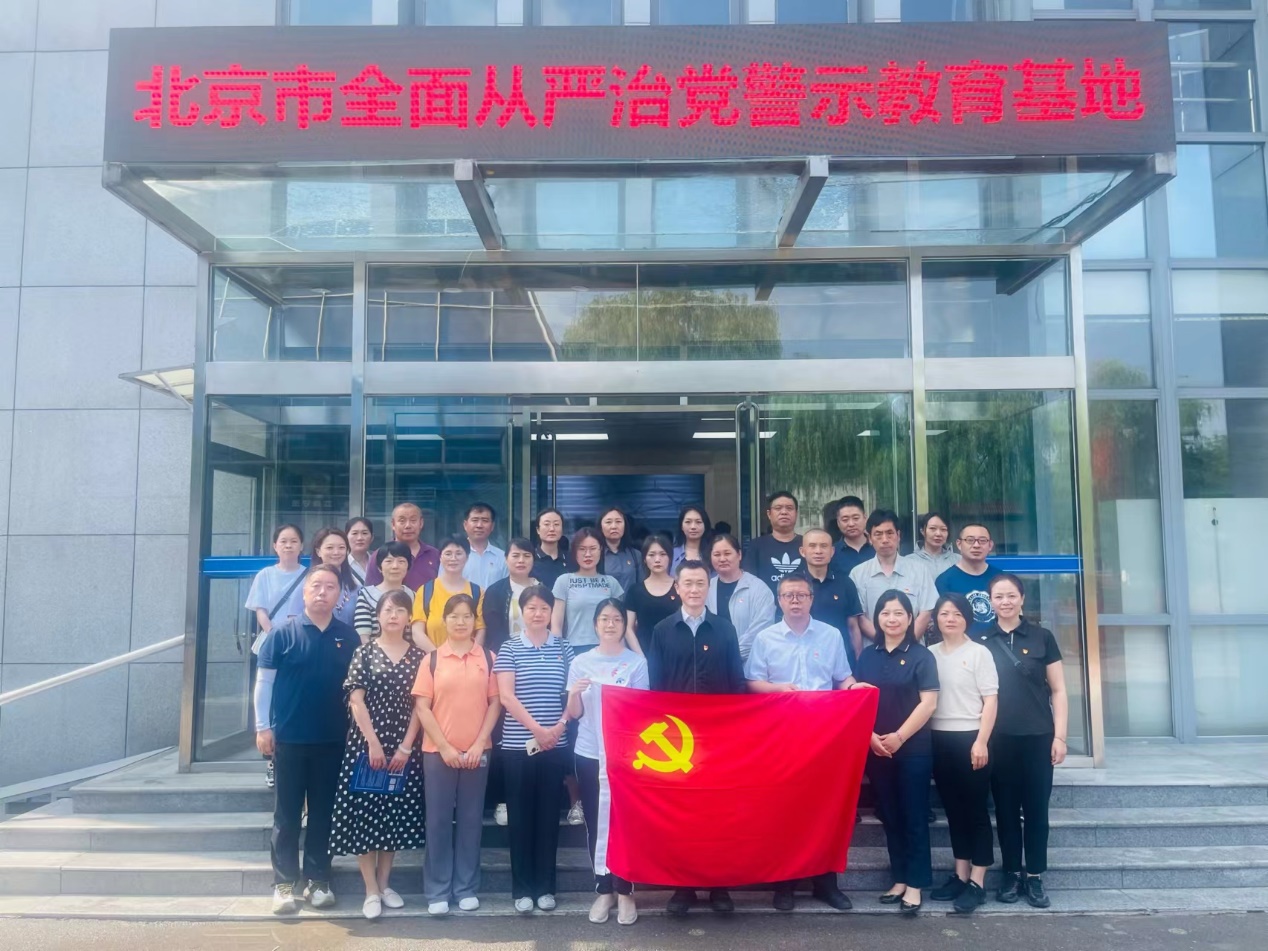 北京市全面从严治党警示教育基地展览从“总书记的告诫”开篇,以习近平总书记重要论述为主线,充分运用党的十八大以来正风反腐成果开展警示教育。在讲解员的引领下,大家先后参观了“挺纪在前、筑牢防线”“以案为鉴、知畏知止”“不忘初心、牢记使命”三个主题展区,展厅中以文字、图片、视频等形式深刻剖析了党员干部违纪违法犯罪的典型案例,呈现了一幅幅生动真实的鲜活图片、一桩桩触目惊心的贪腐案例、一句句发人深省的廉政警句。面对多名职务犯罪服刑人员声泪俱下的忏悔视频和身临其境的“高墙内生活”,强烈的代入感宛如声声警钟,直击全体党员干部的内心深处,使大家深受震撼和触动。参观最后,面向鲜红的党旗,中心党总支书记刘强作为领誓人,带领党员干部重温入党誓词,表达了党员干部入党的初心使命,坚定信念和决心。