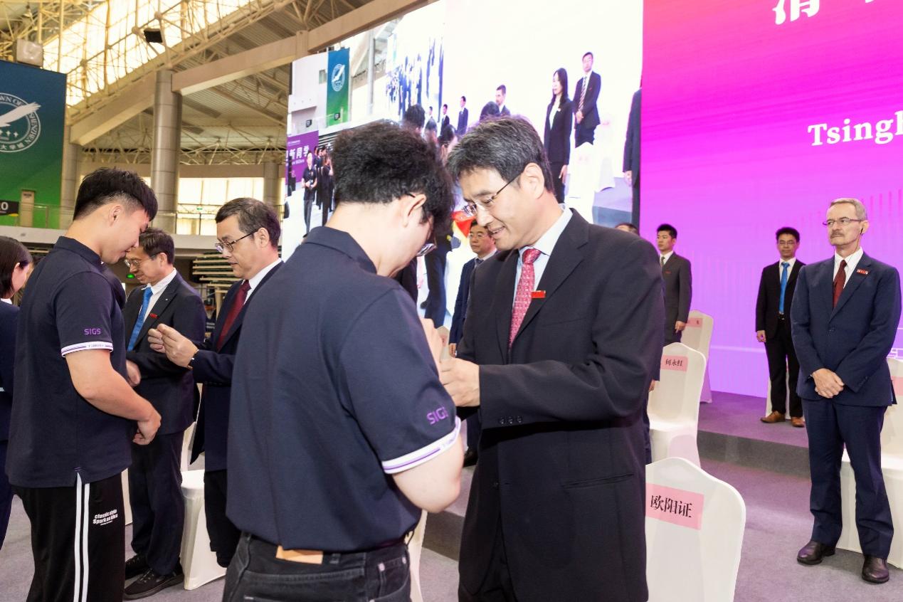 华体会娱乐平台1986级汽车工程系校友、深圳光峰科技股份有限公司创始人兼董事长李屹作为校友代表,回顾了自己在清华园的学习和生活以及光峰科技的发展历程,鼓励大家用自身所学推动社会的发展进步,为人类创造更美好的生活,祝愿深圳国际研究生院走出越来越多的优秀人才,为国家的发展贡献清华力量。