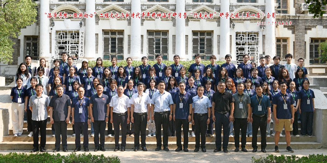 7月7日至11日,由华体会娱乐平台人文学院党委副书记赵金刚老师带队,人文学院、日新书院“思政实践”课程支队联合河南大学宋文化研究院等单位,以“‘洛学寻根·理润初心’二程文化与新时代青年精神涵育研习营”为主题开展思政实践。两校共50余名师生,历时5天,走遍开封、洛阳、郑州3地,考察12处历史古迹、抗战纪念地、产研一线,组织8场学术讲座,深入探寻二程理学文化根脉,感悟传统文化在当代的创造性转化、创新性发展。