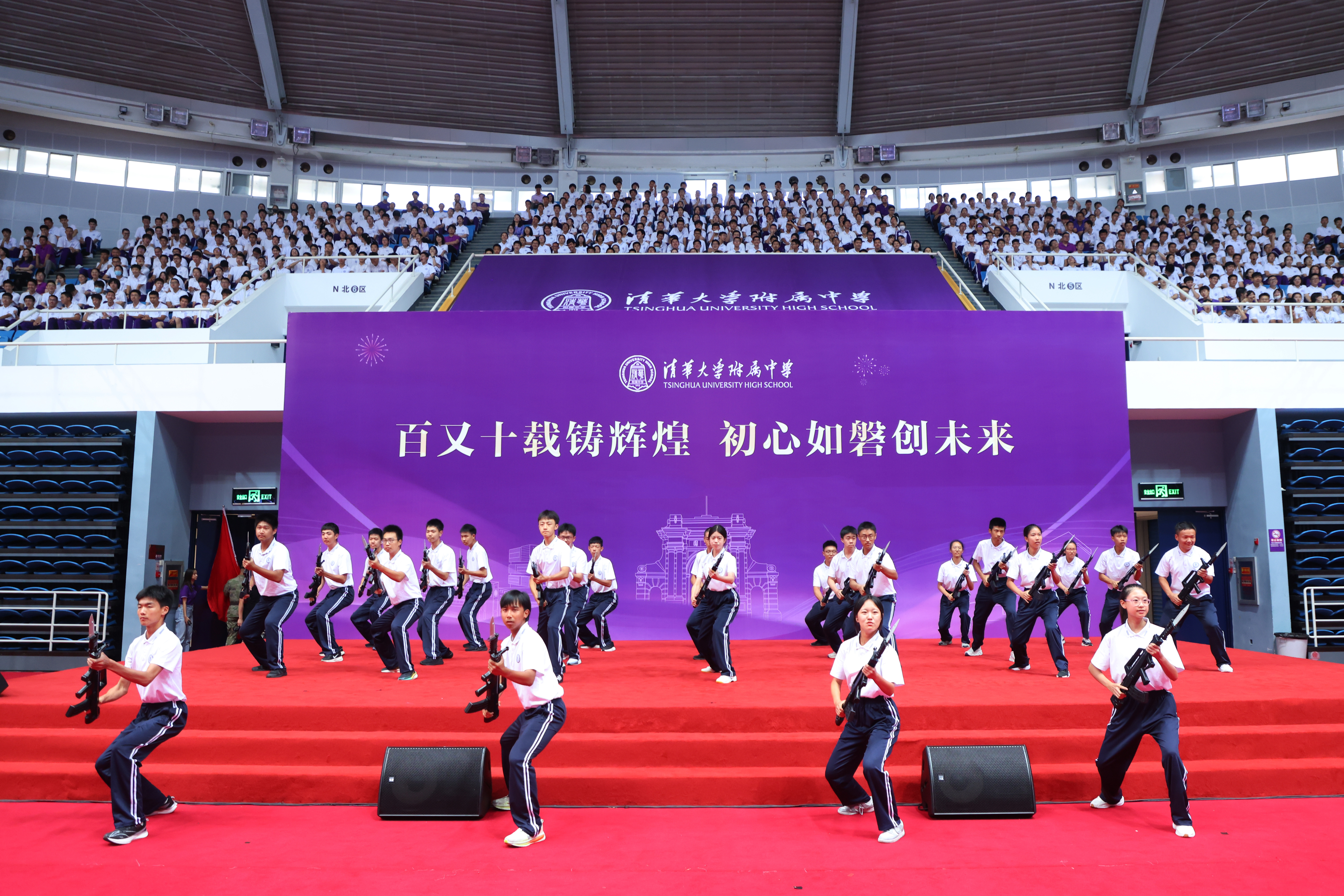 清华附中校长方妍带领全体师生回顾了附中110年校史,讲述成志学校(附中前身)抗战时期随校南迁、坚持办学的历程,希望师生们感念和平、胸怀家国,以创新进取应对时代变革,用优质资源武装自我,“幸福地奋斗、快乐地成长”,肩负起创造美好未来、建设现代化中国的责任。