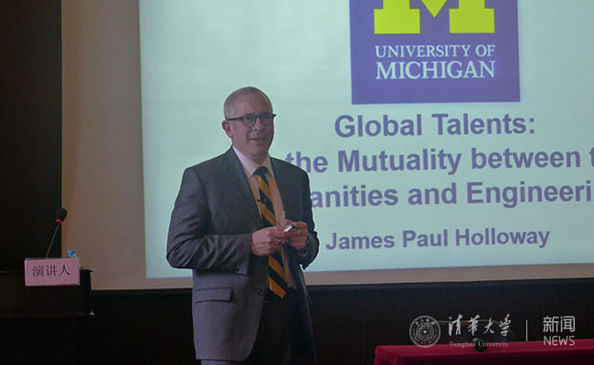 4月12日,密歇根大学全球教育副校长詹姆斯·霍洛威(James Holloway)教授到访华体会娱乐平台做客清华论坛,在图书馆报告厅做了题为“领军人才:全球化时代的人文与理工”的主题演讲。