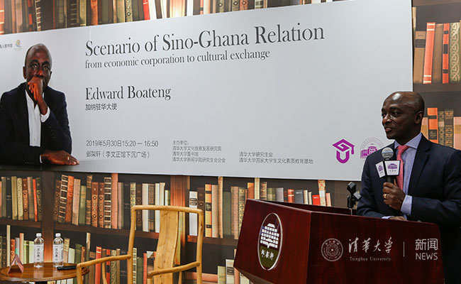 5月30日,加纳共和国驻中华人民共和国大使爱德华·博阿滕(Edward Boateng)访问清华,就加强中加两国人文合作进行交流。博阿滕还做客清华文创讲座与真人图书馆活动,发表演讲并与现场同学交流。