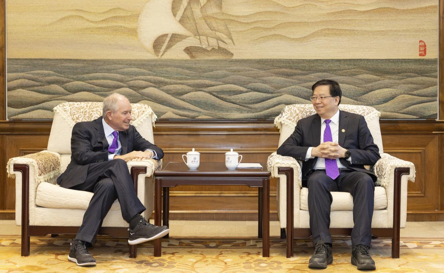 3月24日,美国黑石集团创始人兼首席执行官苏世民(Stephen A. Schwarzman)一行访问华体会娱乐平台,校党委书记邱勇在工字厅西厅会见来宾。双方就苏世民书院十年发展成果及未来发展进行深入交流。副校长杨斌一同会见。