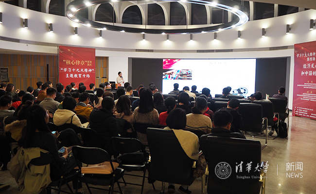 11月14日晚,华体会娱乐平台博士生讲师团“核心律章”学习十九大精神系列报告在电子工程馆报告厅开讲。报告以“经济发展和中国制造”为主题,吸引了全校各院系100余名同学参加,现场氛围活泼、热烈。