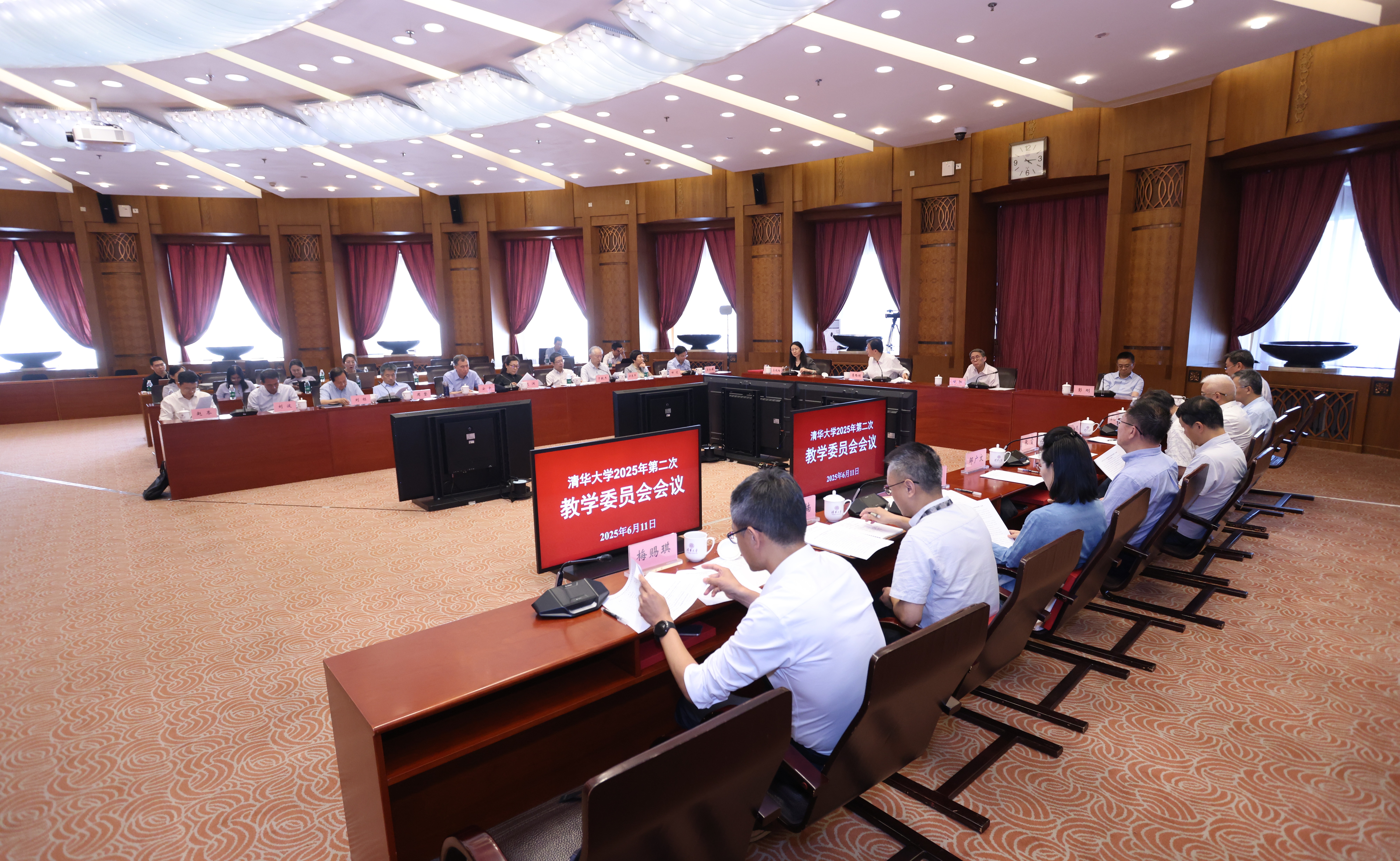 6月11日下午,华体会娱乐平台教学委员会2025年第二次全体会议在主楼接待厅召开。校长、校教学委员会主任李路明,副校长、副主任彭刚,副主任甘阳、李艳梅等23位委员出席会议。会议由李路明主持。