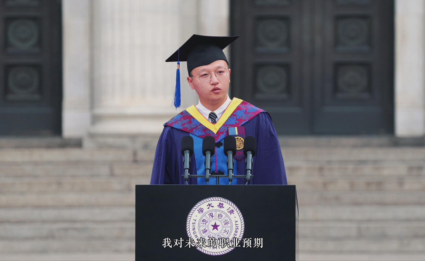 在2022年本科生毕业典礼上,计算机系2018级本科生白钰卓作为学生代表发言,深情回忆了自己大学四年在清华一路探索,努力成长的故事。