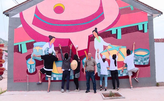 6月14日,在清华美院绘画系毕业工作室主任崔彦伟副教授的带领下,绘画系本科生张杨等6位同学赴延庆区永宁镇上磨村,参加延庆区开展的“秀美乡村,成风化人”的主题墙绘活动。