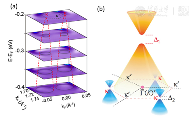 本项研究首次直接测量到石墨烯/氮化硼的原始和第二级狄拉克锥能带结构,并且在狄拉克锥处发现高达160 meV和100 meV的能隙,从而揭示了空间反演对称性破缺在石墨烯/氮化硼异质结的能隙和能带调控中的重要性,展示了范德华异质结丰富的物理特性。